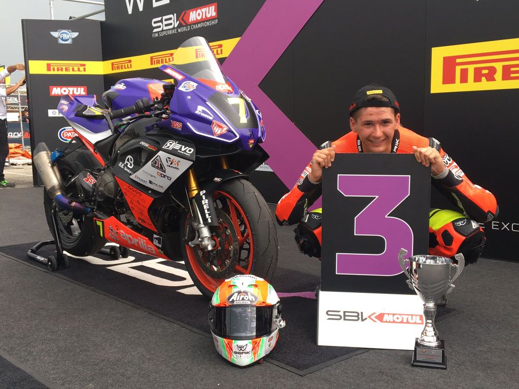 “Wow.. Che weekend emozionante!! Sono felice di esser partito in pole position e di esser tornato a podio, non succedeva dal lontano 2019. Che bello esser stati premiati sul palco del “Paddock show” allestito per le premiazioni e la diretta live delle gara della Superbike. Un onore e un piacere aver ricevuto la coppa del terzo classificato da Massimo Rivola. Ringrazio i ragazzi del team Nuova M2 Racing/Revo project per l’eccellente lavoro svolto, gli sponsor che ci hanno permesso di essere qua oggi e tutti gli amici che mi seguono da casa e in circuito”