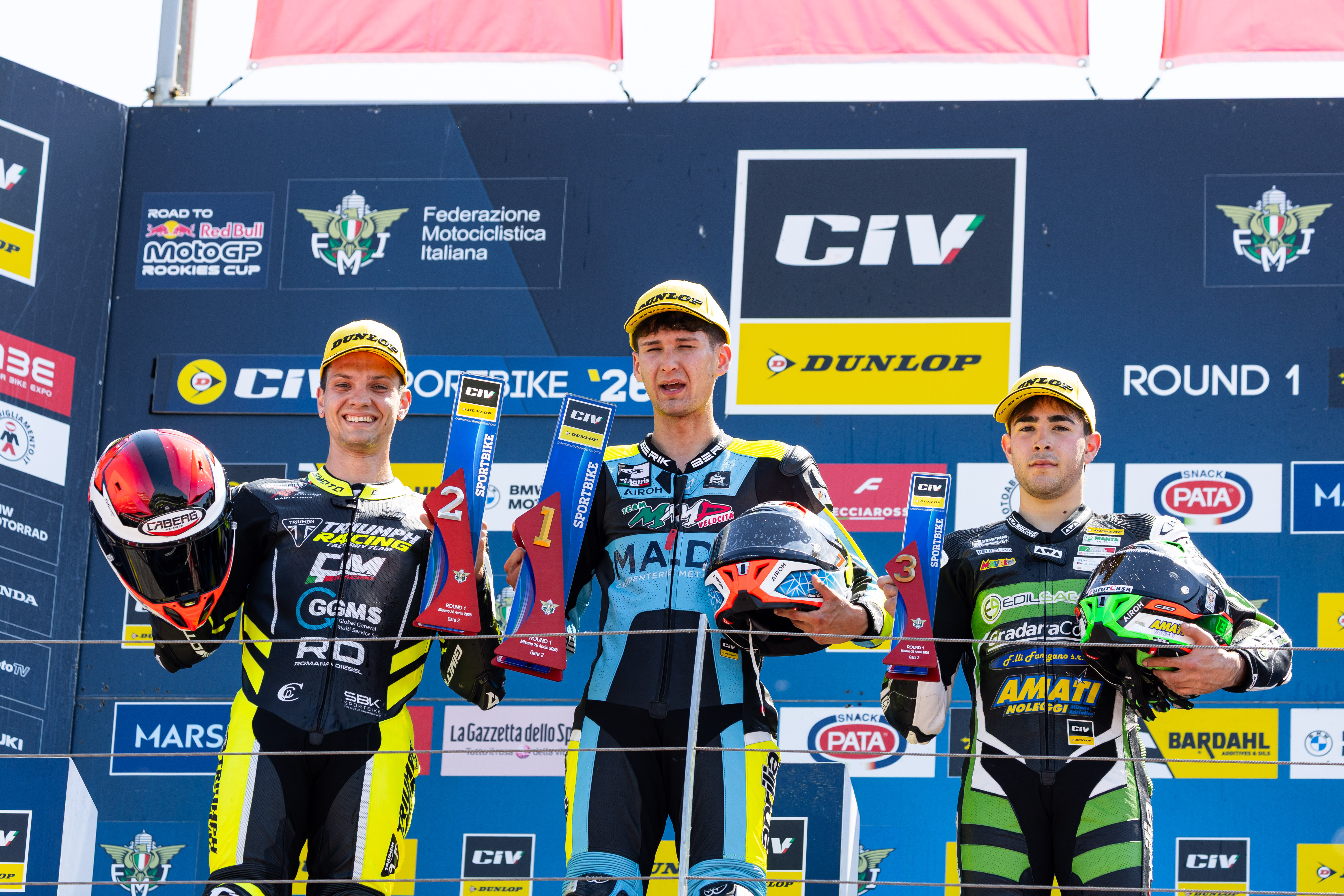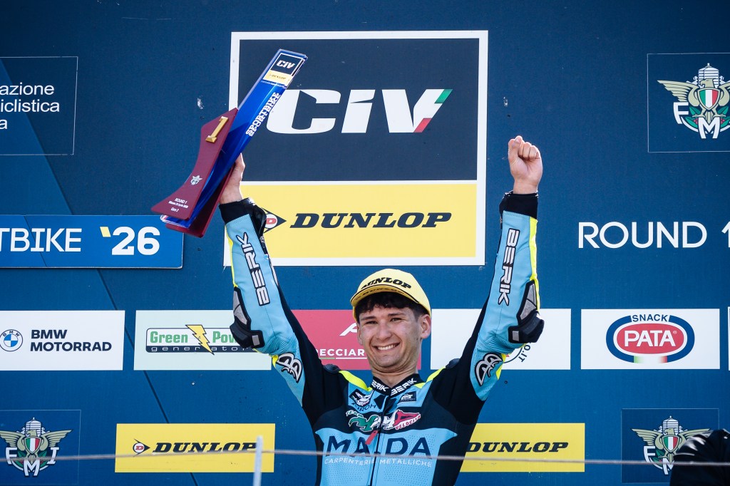 La musica non è cambiata in Gara 1, dove Filippo ha gestito con maturità la pressione, tagliando il traguardo davanti a Bruno Ieraci (pilota CM Racing impegnato nel Mondiale Sportbike) e il compagno di squadra Alfonso Coppola, completando un podio di altissimo livello.