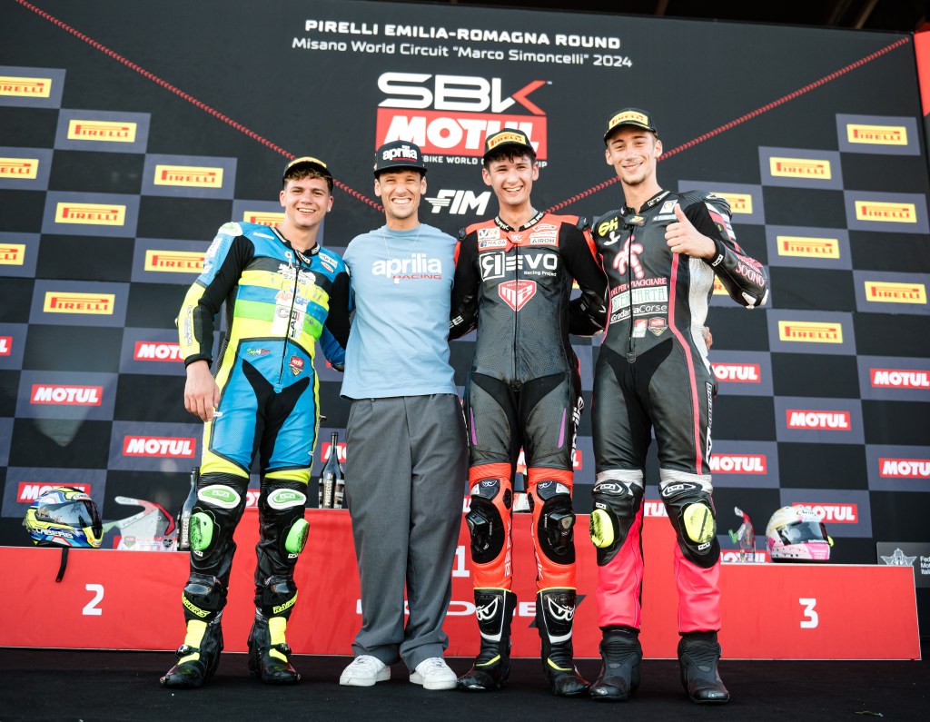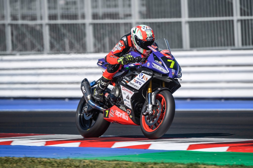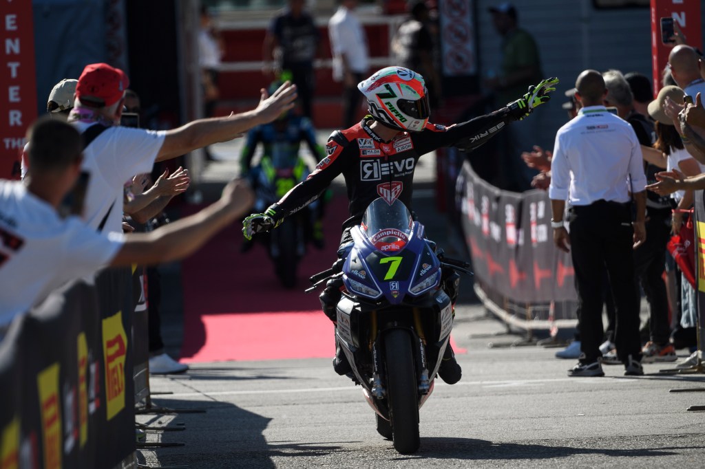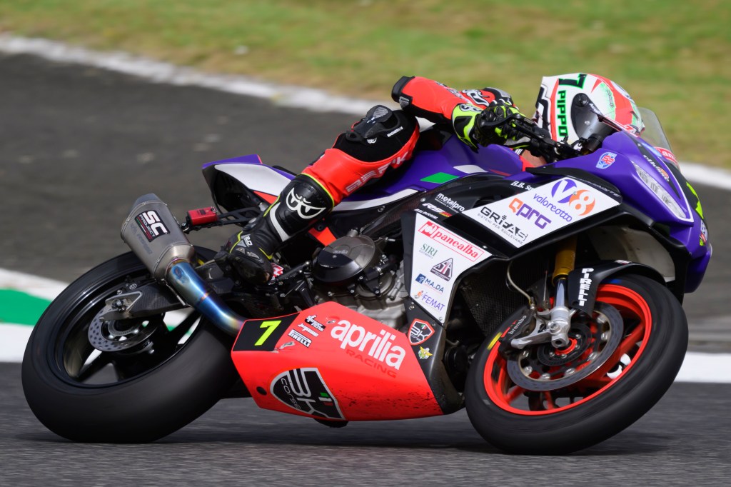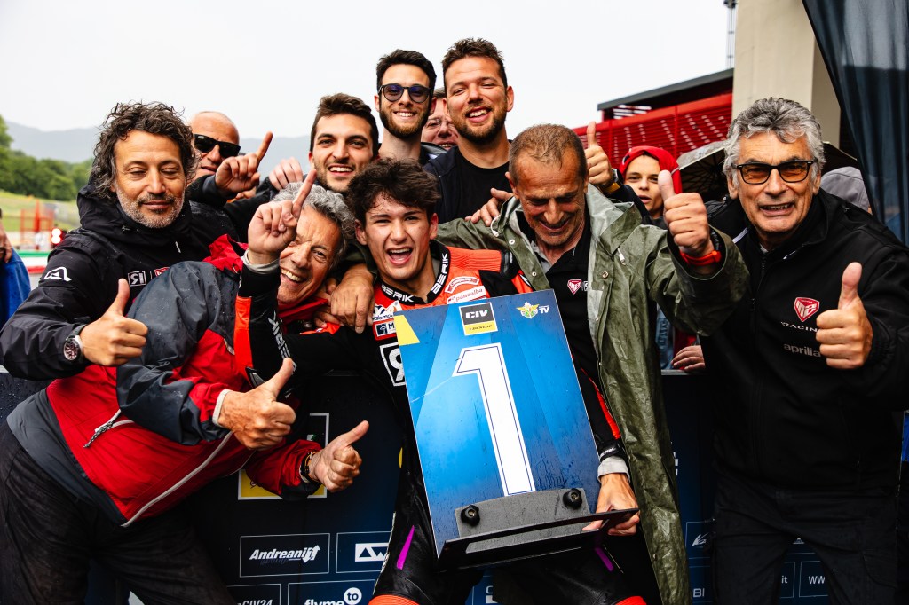 La seconda e ultima gara del weekend, del tutto in condizioni normali, ha visto il pilota toscano come sempre nella lotta per la vittoria. Una lotta a quattro in pieno stile Trofeo Aprilia RS 660 che ha saputo amministrare fino allo strappo finale, quando il numero #7 ha fatto registrare i suoi migliori tempi sul giro tra cui un 1.43.298, determinante per vincere a andare sul +13 in classifica generale.